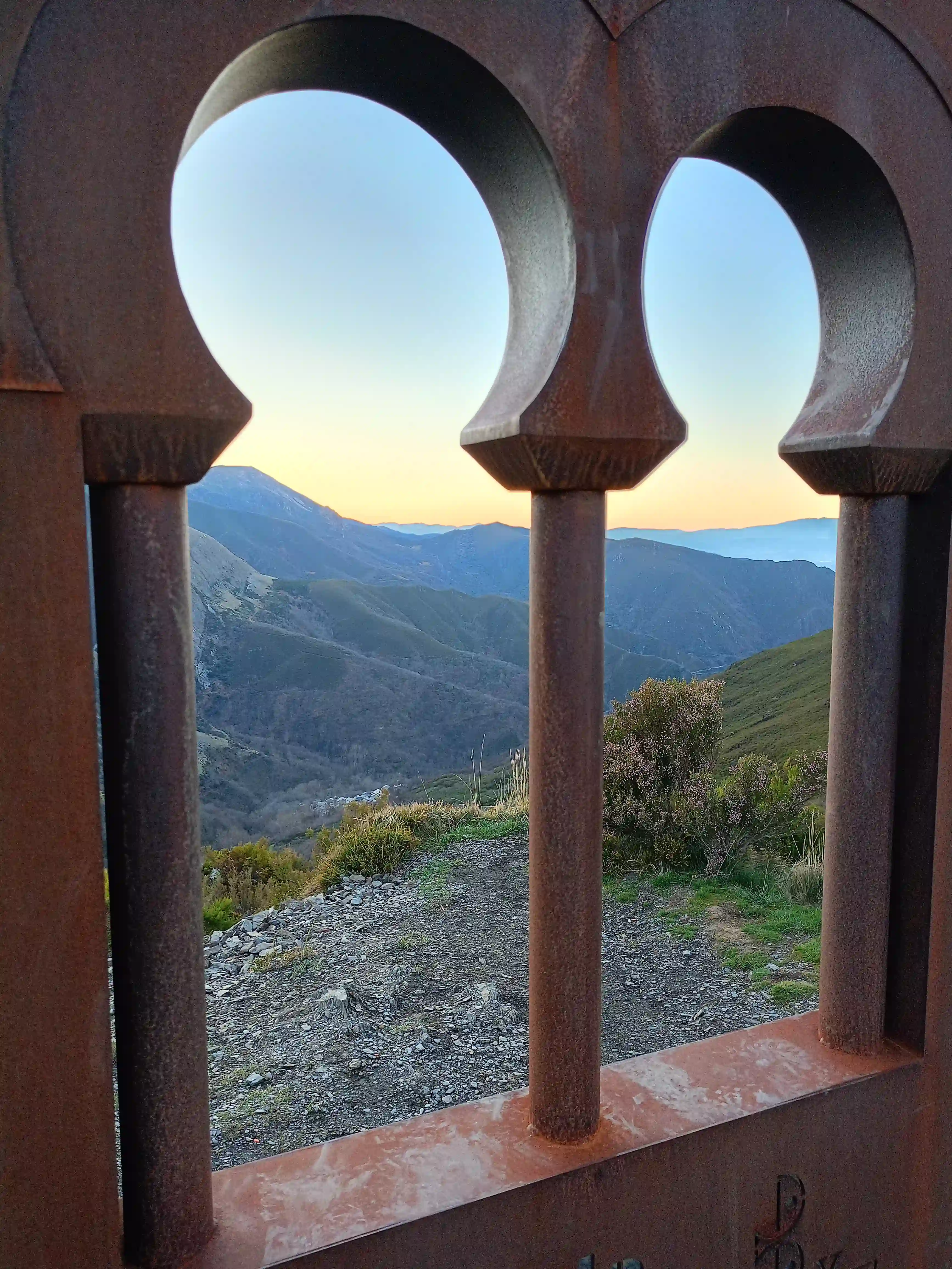 Un espectacular mirador en el Alto de la Cruz, que recrea la puerta de la iglesia mozárabe de Peñalba de Santiago, con una frase de la obra 'España Sagrada' del Padre Enrique Flórez.