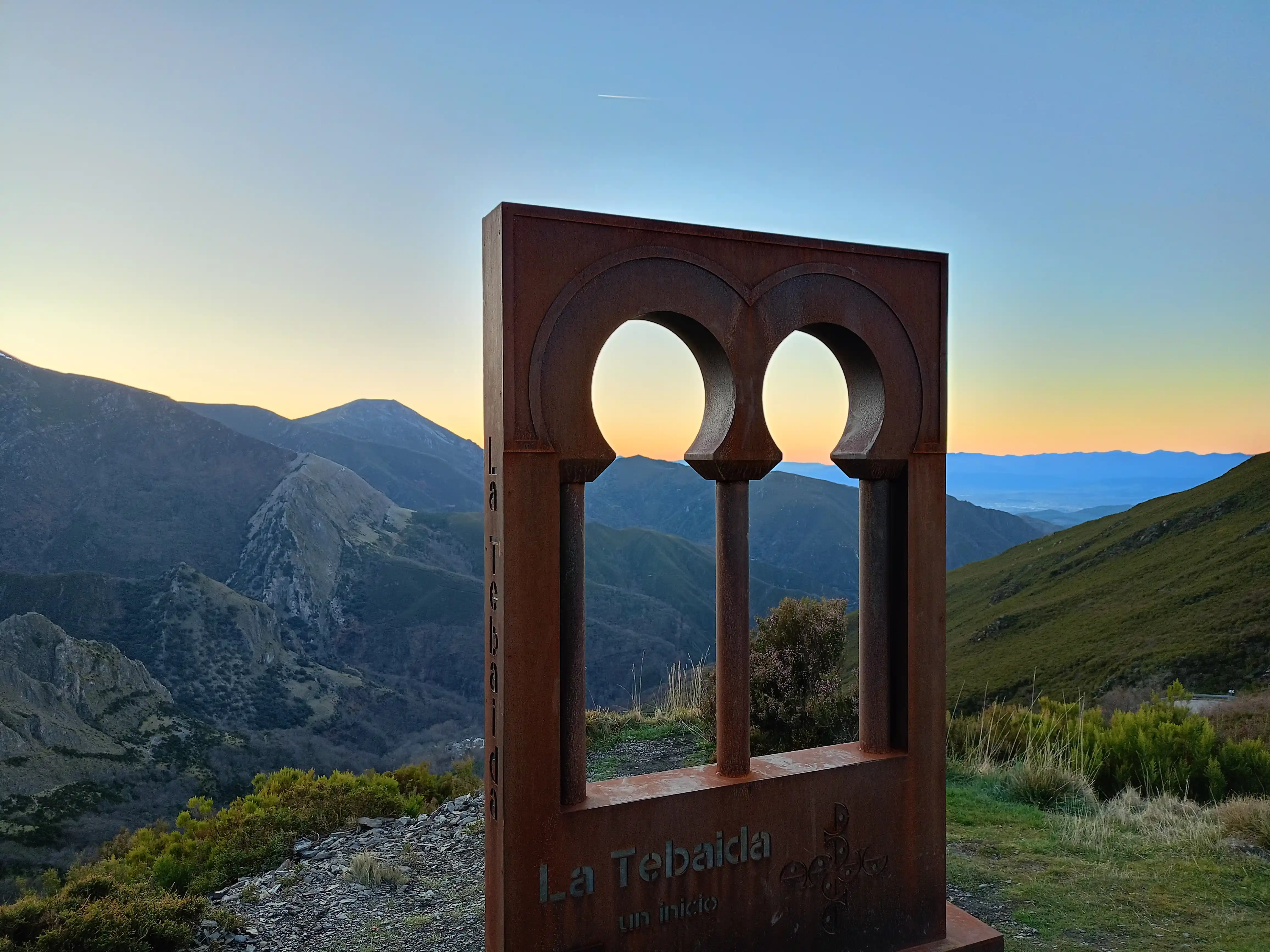 Se trata de un trabajo realizado en acero corten y que se ha colocado en un punto estratégico de ese Alto de la Cruz, desde donde se pueden observar Peñalba de Santiago, Montes de Valdueza y los Montes Aquilianos, entre otros puntos. También hay un banco donde sentarse para contemplar la belleza del paisaje.