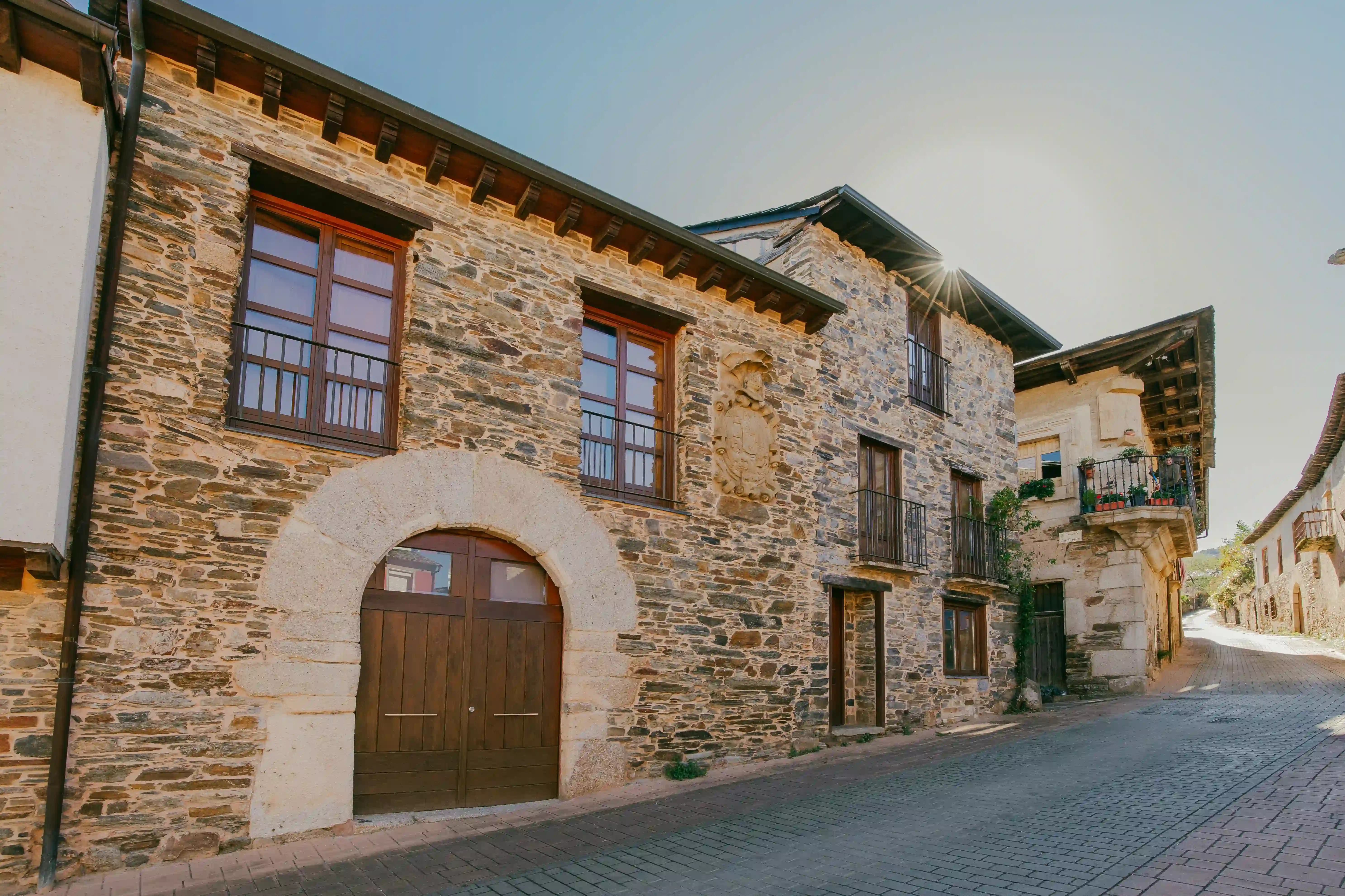• Un Viaje al Pasado Arquitectónico: El principal atractivo del pueblo reside en su excepcional estado de conservación. Pasear por sus calles es realizar un viaje en el tiempo. La prosperidad económica de antaño, ligada al comercio del vino, se refleja en las imponentes casas solariegas y palacios blasonados que flanquean sus estrechas y empedradas calles. La arquitectura tradicional berciana, con sus muros de piedra maciza y tejados de pizarra, otorga al conjunto una armonía y un carácter únicos. La Plaza del Herrador, rodeada de estas edificaciones señoriales, es un punto clave para admirar este legado.