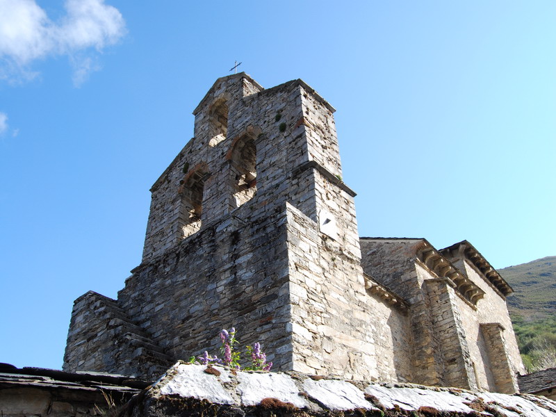 Rodeada por los impresionantes paisajes de los Montes Aquilianos, la iglesia se alza como un remanso de paz en un entorno de montaña que conserva su esencia medieval. El edificio, pequeño y austero, destaca por su armonía arquitectónica y su estilo mozárabe, caracterizado por el uso del arco de herradura, las bóvedas de cañón y los ábsides contrapuestos. Estas formas evocan un pasado de convivencia entre culturas cristianas e islámicas, haciendo de la iglesia un lugar único en el contexto histórico español.